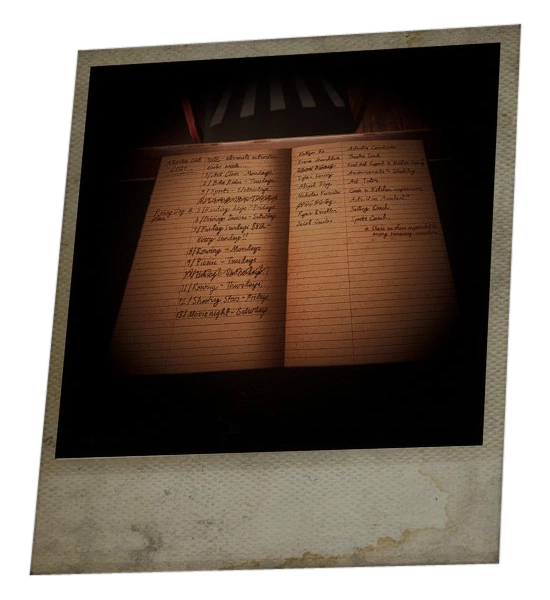 The Counselor's Ledger is a clue in the Camp History clue collection. It can be found by Dylan in Chris Hackett's Office during Chapter 2 of The Quarry.