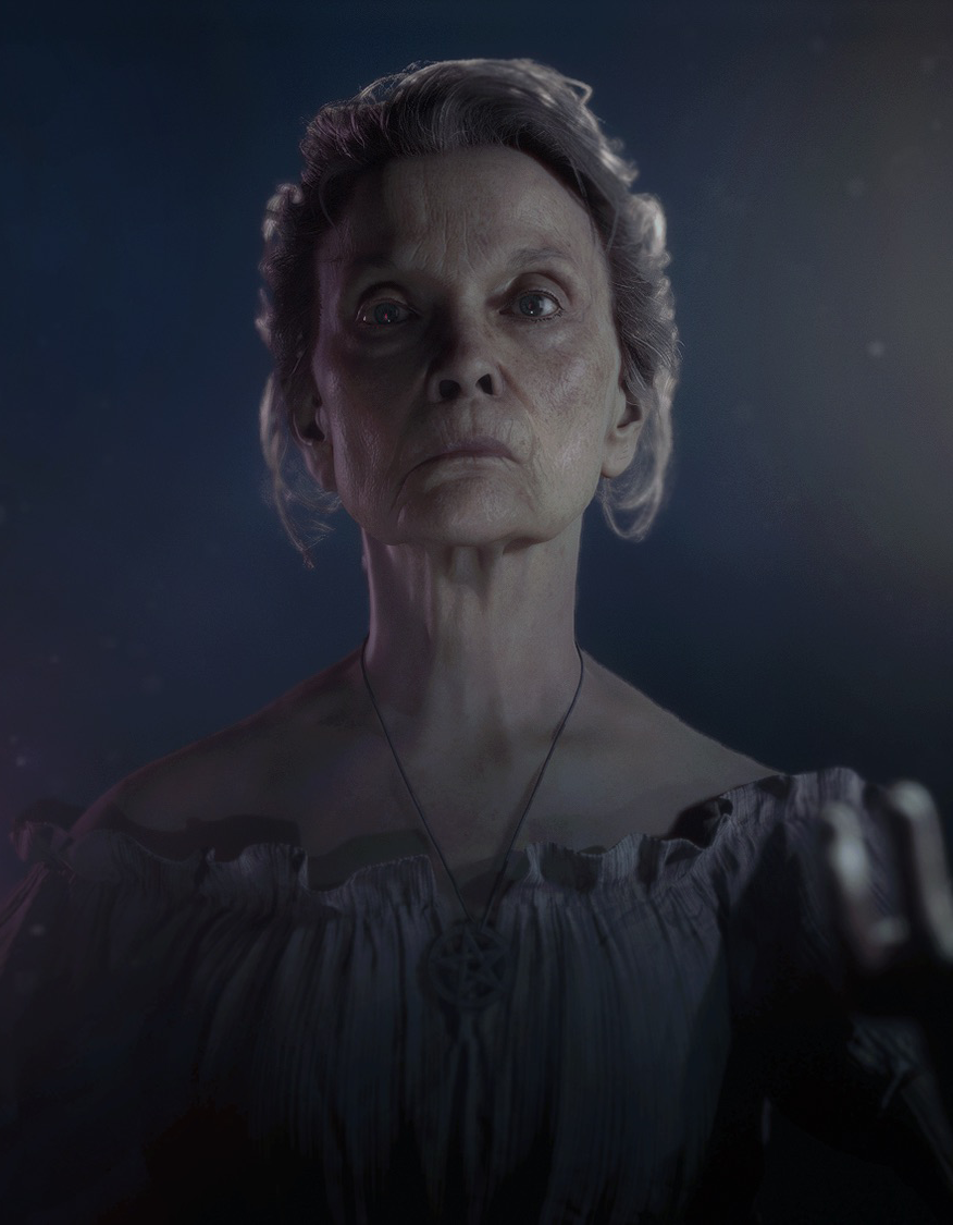Eliza Vorez is the overarching antagonist and narrator in The Quarry, known in legends and stories as the Hag of Hackett's Quarry. Between chapters, she offers to read the player's future through tarot cards. She was voiced and motion captured by Grace Zabriskie.