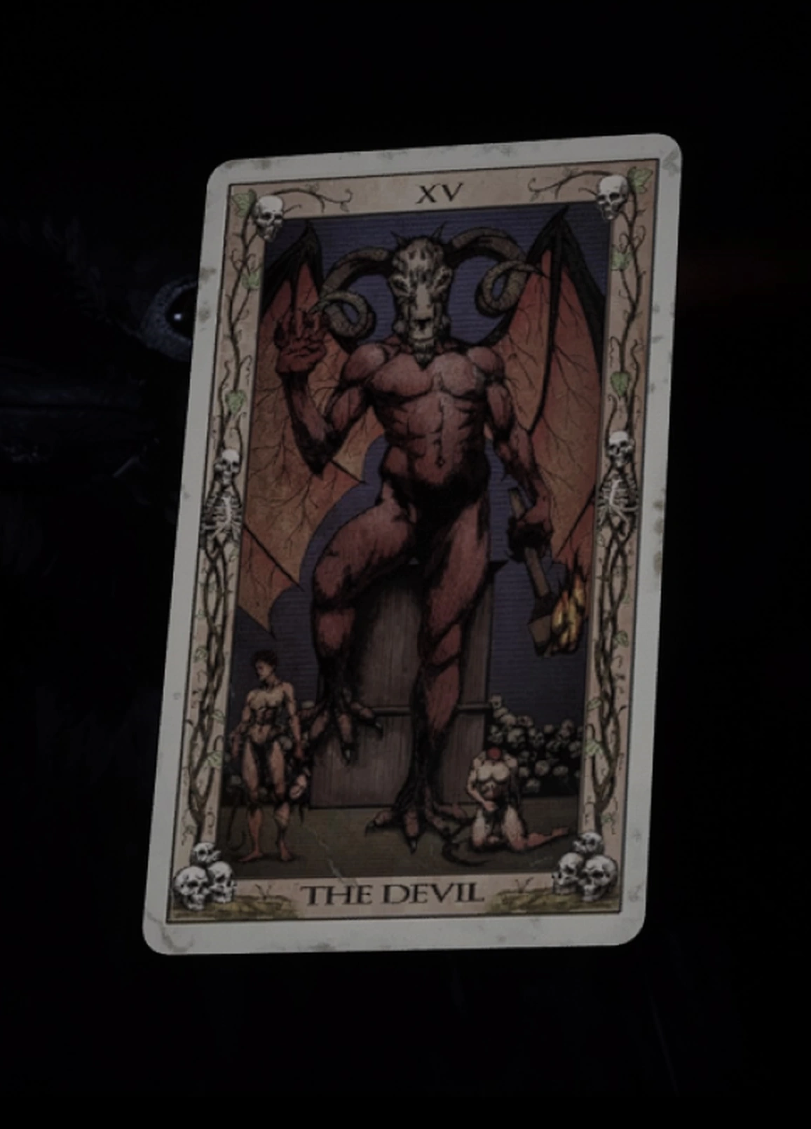 The Devil is a tarot card that can be found when playing as Dylan during Chapter 5 in The Quarry. The vision given by this tarot card may occur during Chapter 6.